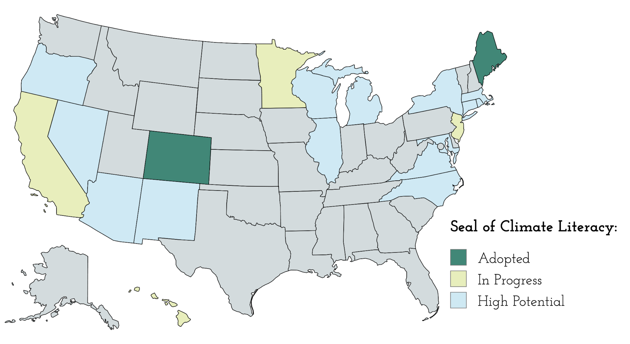 Colorado’s Seal of Climate Literacy sparked a national movement to recognize climate-ready graduates. Other states are now adapting the Colorado model while tailoring it to local needs. The Seal was also recently adopted as policy by the Maine Department of Education. Follow along as more states across the country pursue Seal policy.