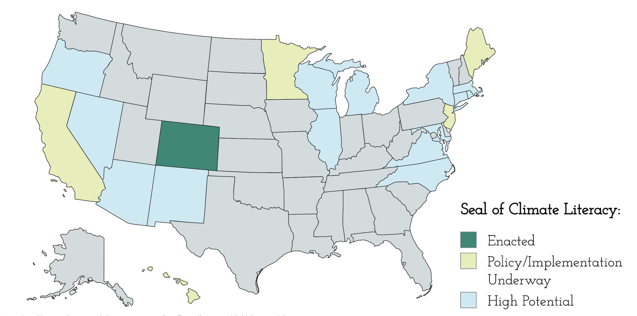 What began as a student-led movement in Colorado has become a growing national effort to recognize climate-ready graduates. Enacted into law in 2024, the Seal of Climate Literacy proved that states can honor student knowledge and leadership in meaningful, achievable ways. Today, states across the country are building on Colorado’s success to adopt a proven model that prepares students for the future they are stepping into.
